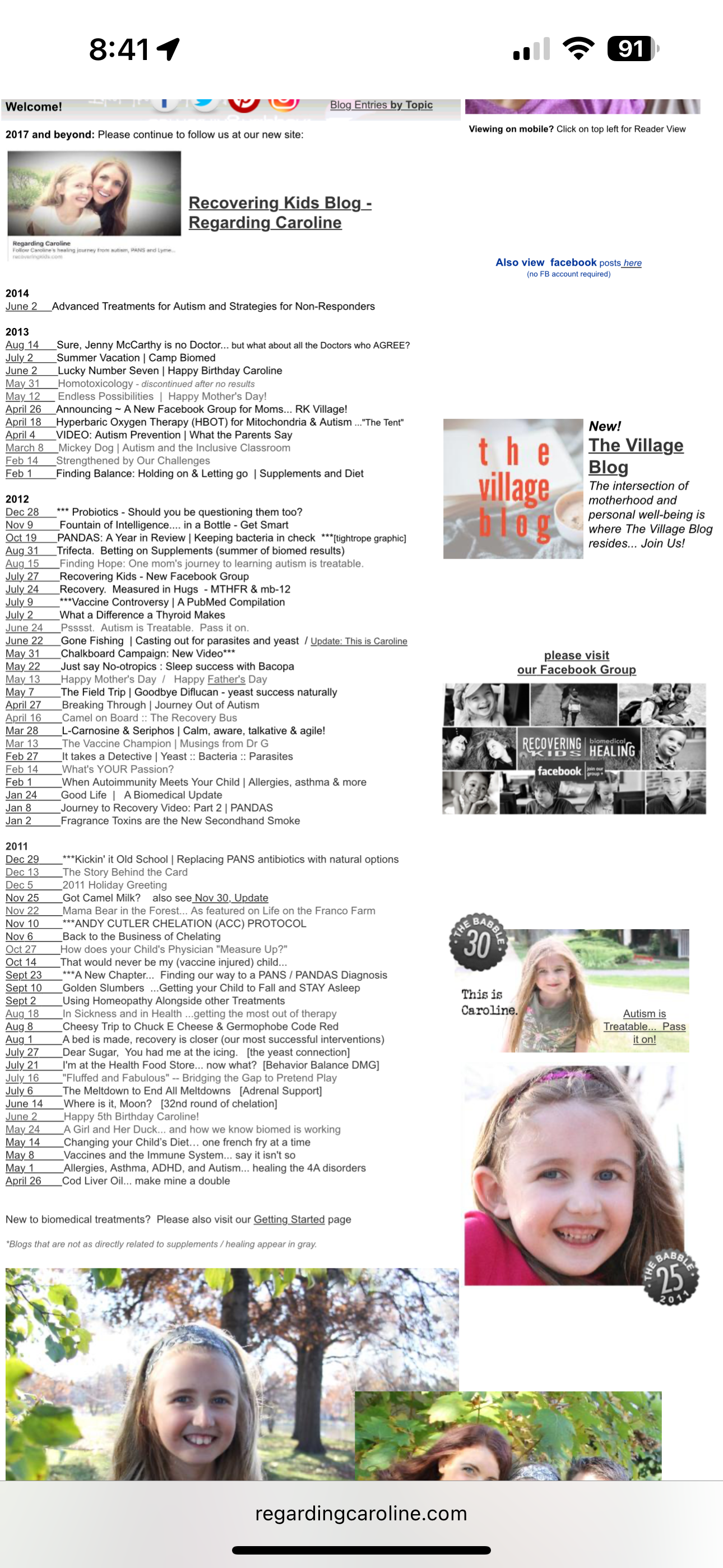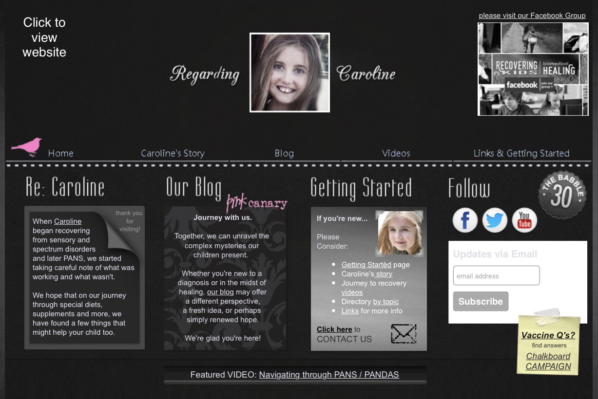 During the first 3 years of our journey with biomedical treatments, we chronicled it all at the website Regarding Caroline (see below for select posts).