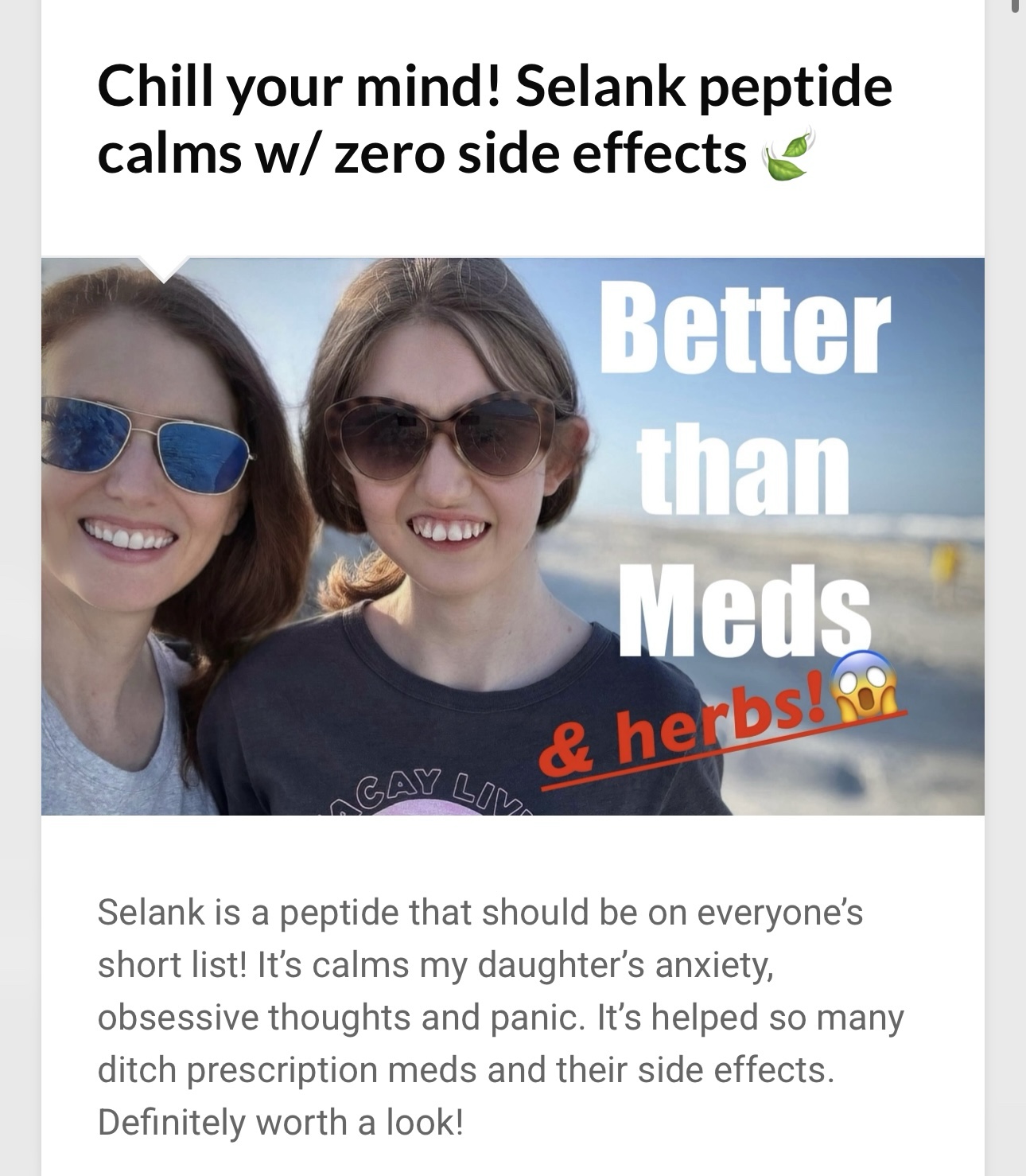 Propranolol – helped with anxiety, but she was more present without it, I regret using this one